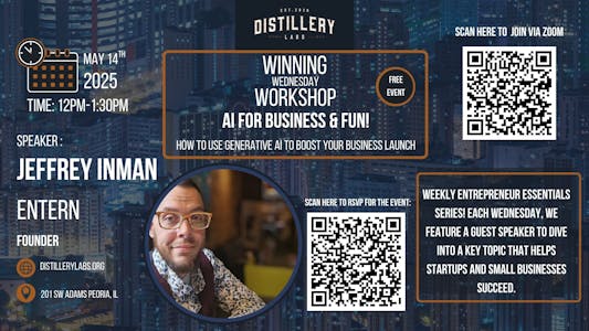 Winning Wednesday Workshop: J.D. Dalfonso, President/CEO of Discover Peoria Be sure to attend the Winning Wednesday Workshop Series at Distillery Labs! Learn from and engage…